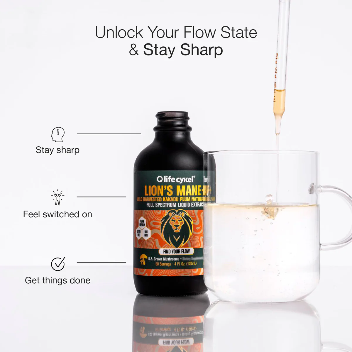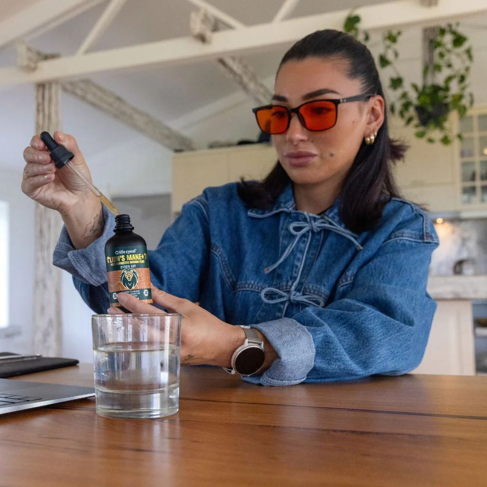Add 2ml (½ dropper) of Lion’s Mane Mushroom Extract to your coffee, tea, smoothie, or water.
